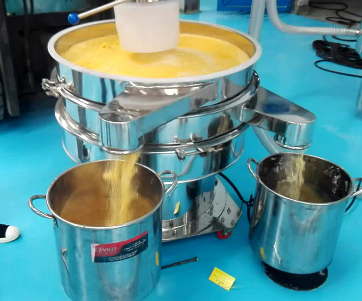 粗砂糖振動篩采用YZUL立式振動電機作為激振源,通過振動電機上下兩端的偏心重錘將旋轉運動轉變為水平、垂直、傾斜的三次元運動,并傳遞到旋振篩的篩面上;物料通過入料口進入設備內,根據不同物料篩分要求,物料經過1-5層采用不同目數的金屬編織篩網的篩分層,在這個過程中,位于各層的篩網下的清網裝置(橡膠彈跳球)通過頻率振動不斷撞擊篩網,使篩網上層物料能夠順暢的透網篩分,并有效解決了物料堵網問題出現,不同目數的物料通過各層對應目數的篩網后在各層的出料口排出,終實現篩選除雜或過濾分級的目的。